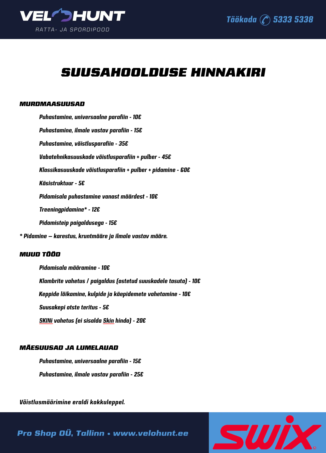 Suusahoolduse hinnakiri