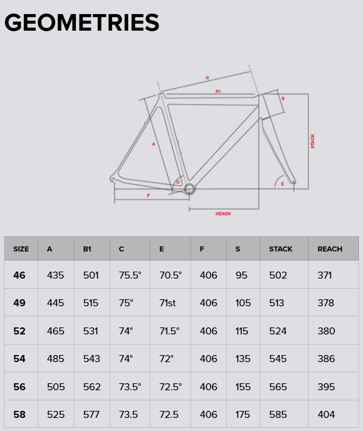 | Raamisuurus | 46 cm, 49 cm, 52 cm, 54 cm, 56 cm, 58 cm |
