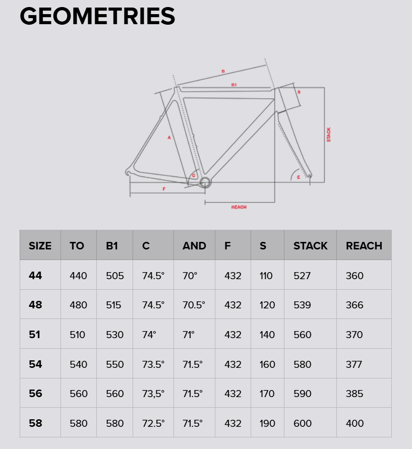 | Raamisuurus | 44cm, 48 cm, 51 cm, 54 cm, 56 cm, 58 cm |