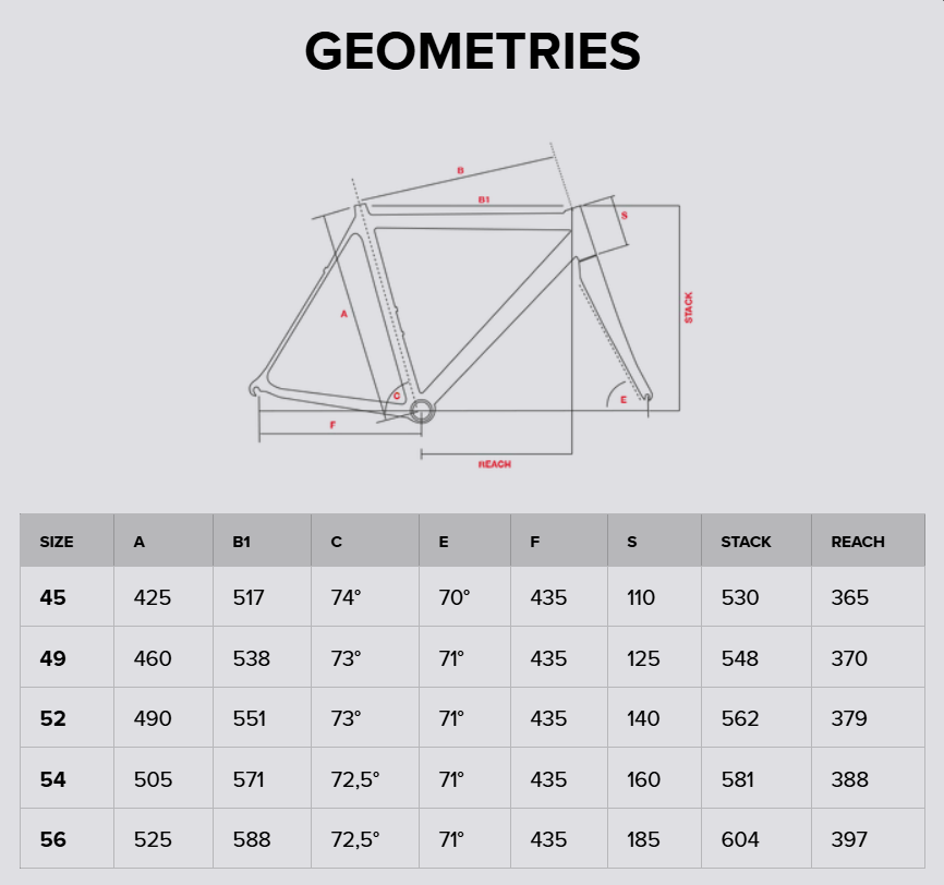 | Raamisuurus | 45 cm, 49 cm, 52 cm, 54 cm, 56 cm |