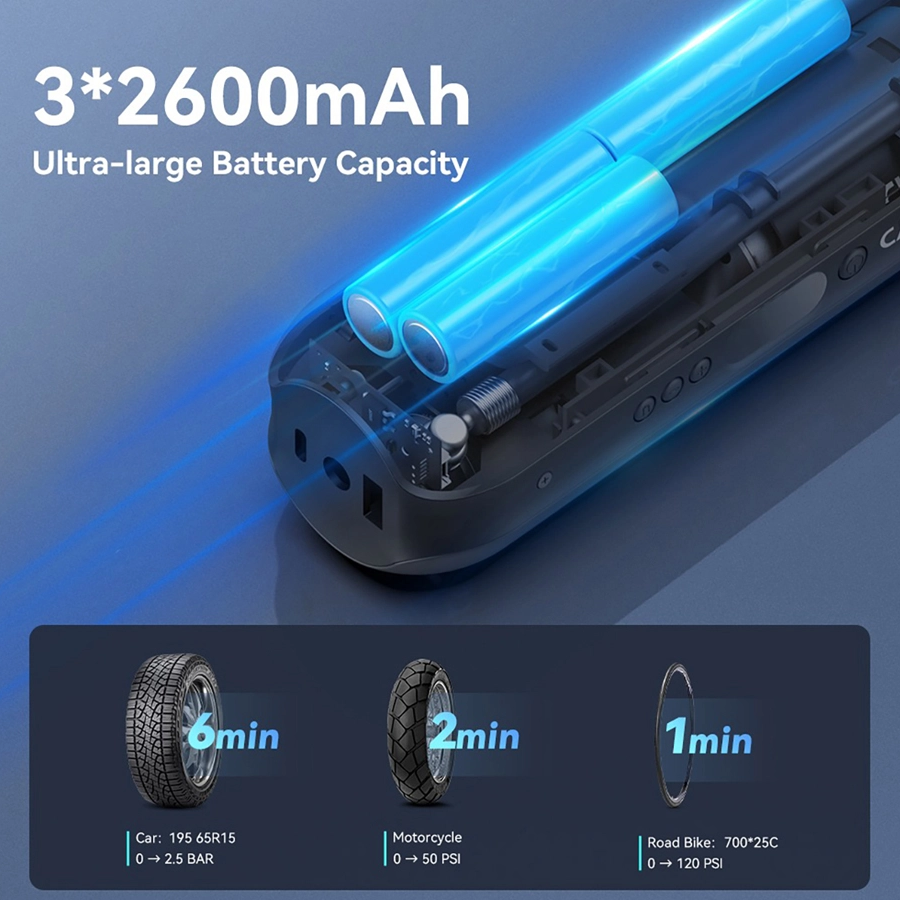 Cycplus A2 Pro on võimas ja multifunktsionaalne kaasaskantav kompressor, mis on loodud nii ratturitele, mootorratturitele kui ka autojuhtidele. Lisaks kiirele rehvide pumpamisele toimib see seade ka akupangana ja LED-taskulambina, olles asendamatu kaaslane igal reisil.