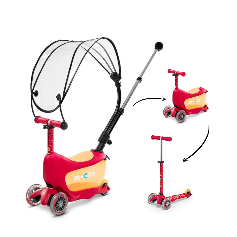 See multifunktsionaalne tõukeratas kasvab koos lapsega, olles pisemate jaoks istme, hoiukasti ja lükkevardaga vanemate poolt juhitavaks sõidukiks, hiljem ilma lükkevardata jooksurattaks ja lapse kasvades saab kõik lisad eemaldada ning muuta tõukeratta Micro Mini Deluxe versiooniks. Istme all olev hoiukast lisab juurde mängulisust ja võimaldab lapsel endaga mänguasju kaasas kanda. Plus märkega versioonil on kaasas ka reguleeritava pikkusega lükkevarras, millega lapsevanem saab tõukeratast mugavalt lükata ja juhtida.